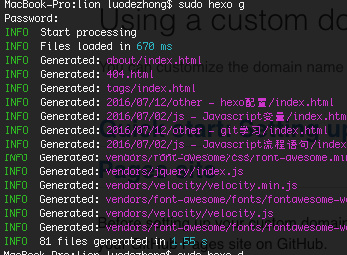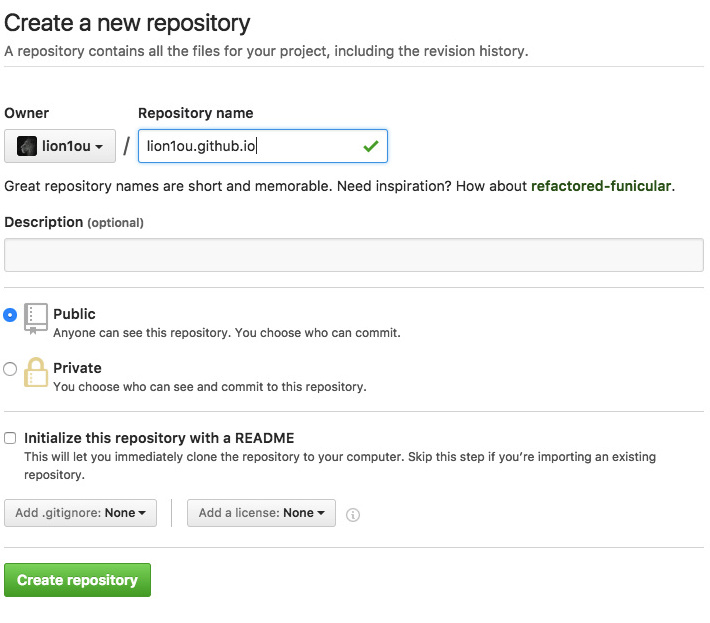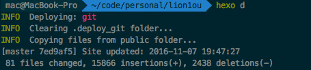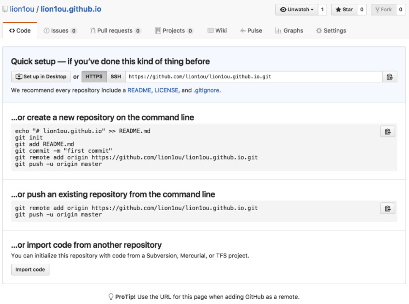 deploy: type: git repo: git@github.com:lion1ou/lion1ou.github.io.git # 在github对应项目中复制,选择shh和http都行 branch: master以上是部署前必须配置的,其他配置详见官网文档
