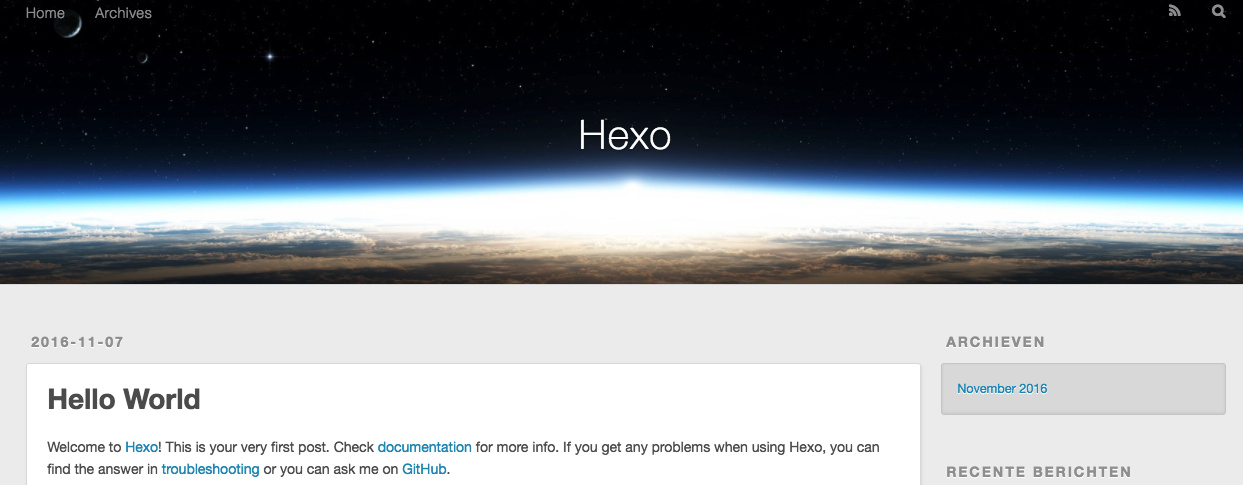 hexo server启动 Hexo 自带服务,可简写成hexo s默认情况下,访问网址为: http://localhost:4000/浏览到你刚建完的本地静态网站。