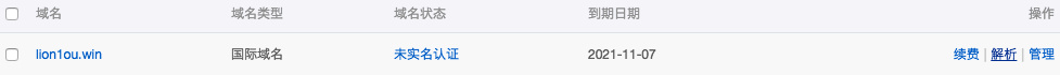 域名申请,可以在阿里云注册,本人的lion1ou.win就是阿里云注册的,25RMB/五年,这里不赘述。