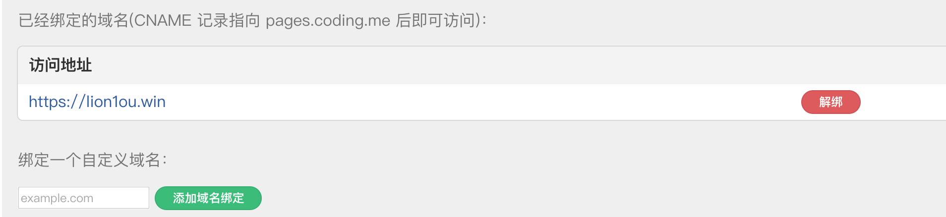 如上图在 coding Pages 服务页面,添加域名绑定,然后你就可以通过以上域名访问了。