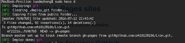 hexo clean、hexo g、hexo d重新部署文件若部署过程中出现未提及错误,请参见官方文档
