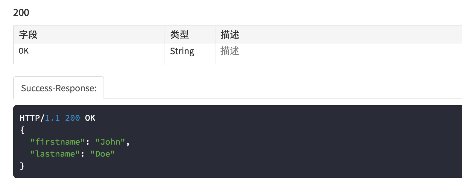 如下代码,定义一个 API 调用成功的内容,然后在其他 API 文档中调用这个内容
