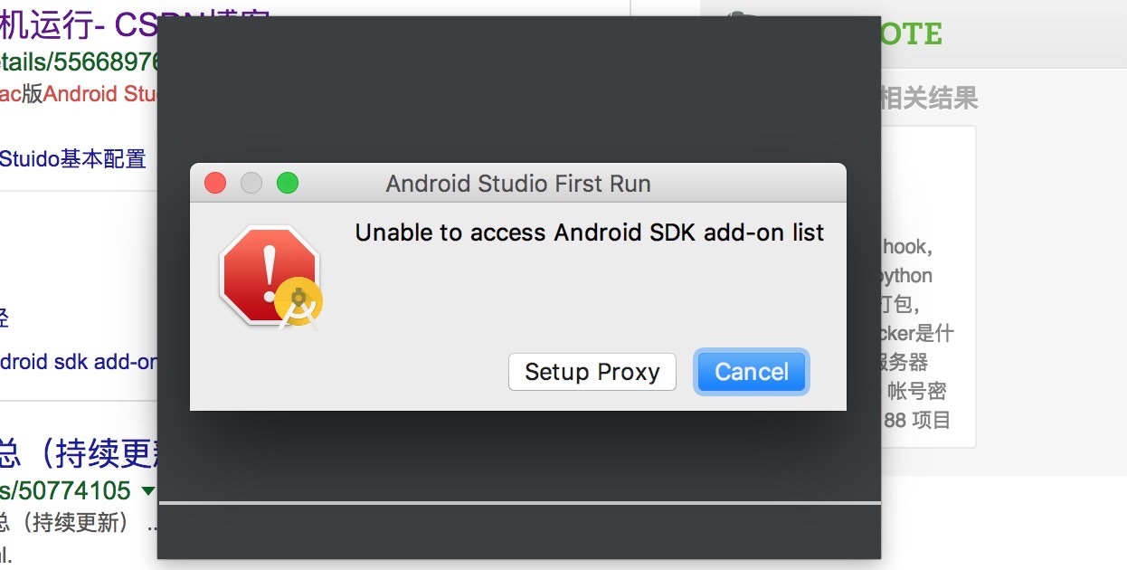 Unable to access Android SDK add-on list第一次安装 Android studio 时候弹出 unable to access android sdk add-on list
