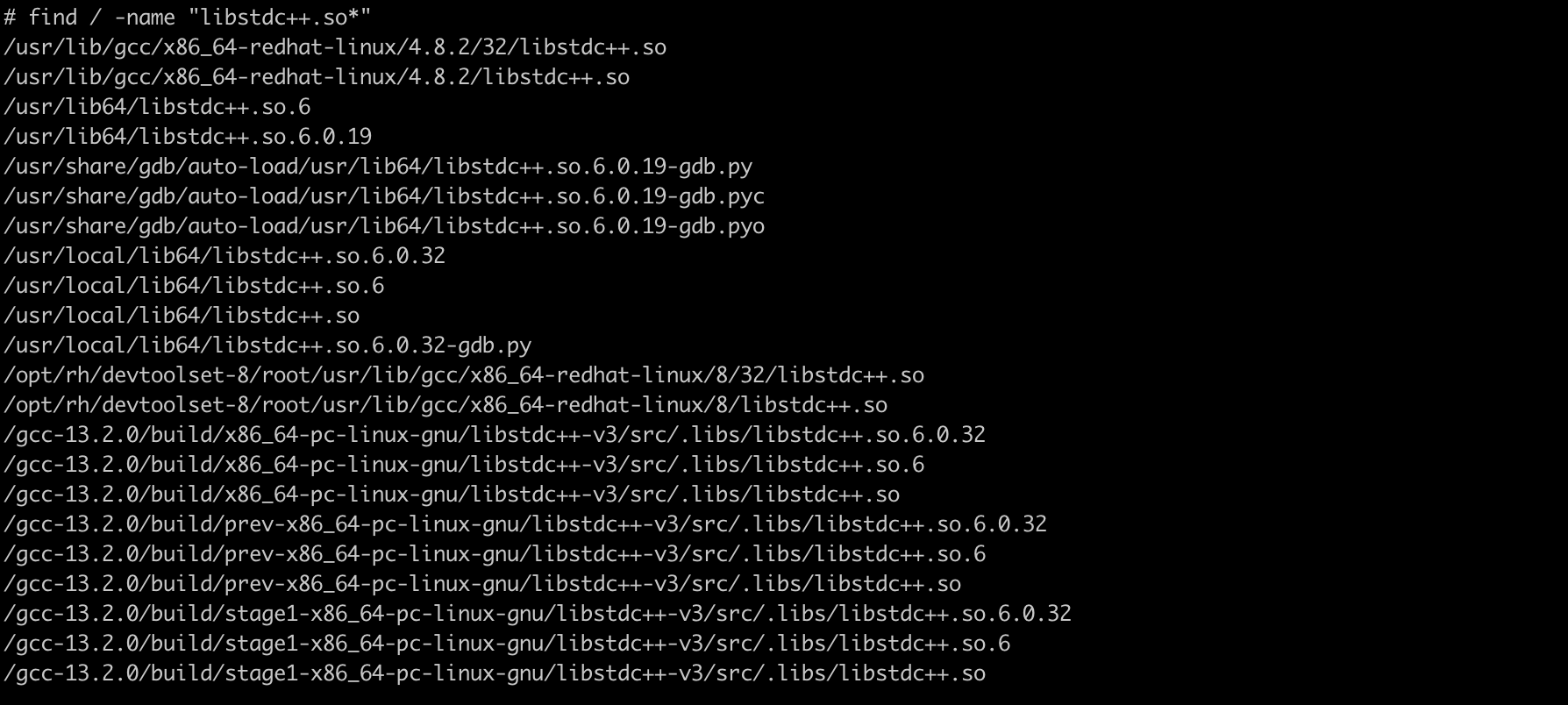 可以看到,有更高的版本 <font style="color:rgb(77, 77, 77);">/usr/local/lib64/libstdc++.so.6.0.32</font>