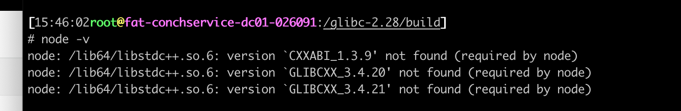 出现这个报错的原因是:新版的node v18开始 都需要GLIBC_2.28支持,可是目前系统内却没有那么高的版本。